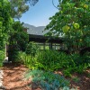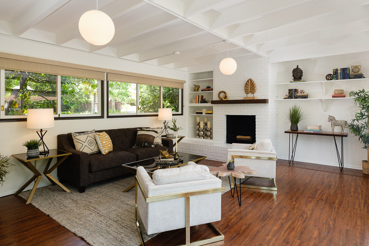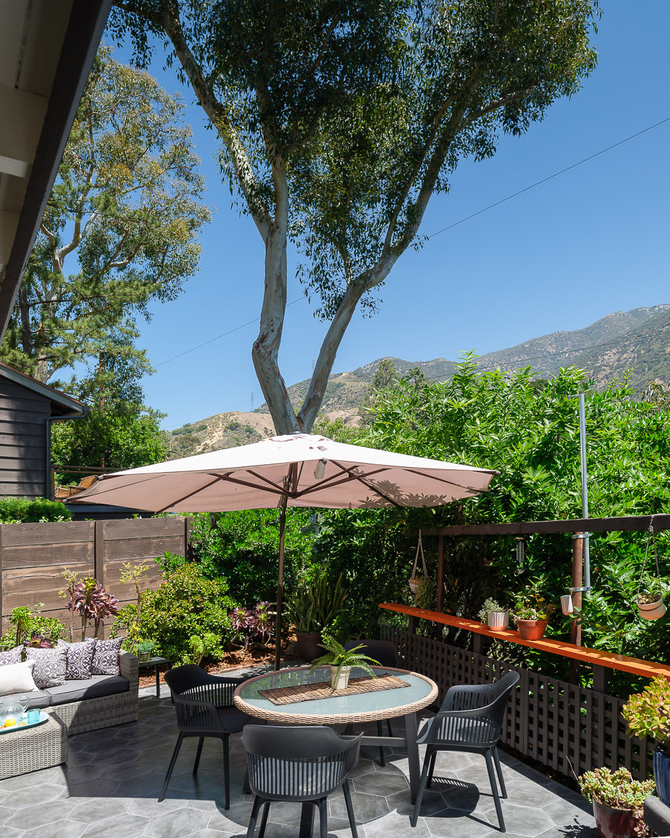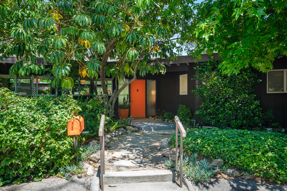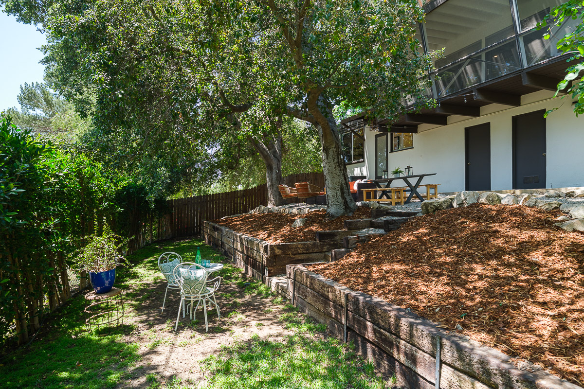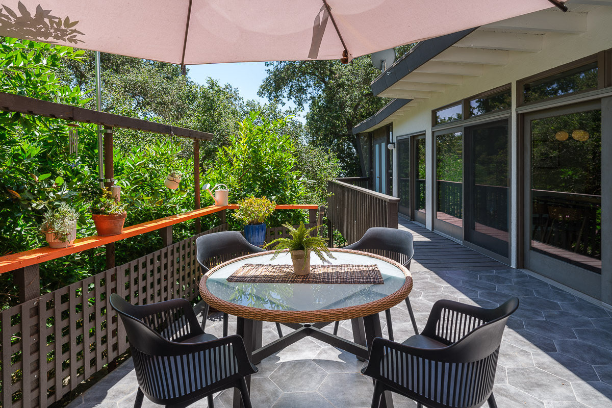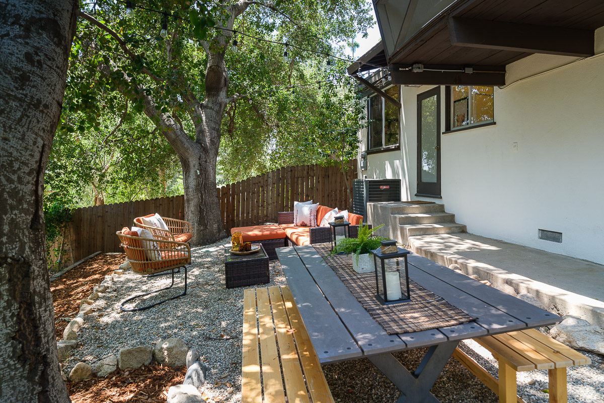 The exterior of the house is accessed from numerous sets of tall glass doors that frame the sweeping views of our majestic San Gabriel Mountains. Enjoy the raised deck and patio area while entertaining friends or for simply relaxing with the morning paper. It is idyllic and steps down to the shade-dappled, terraced yard that beckons you with its serenity and grace, all in a once in a lifetime location. Don’t miss this true Altadena beauty.