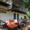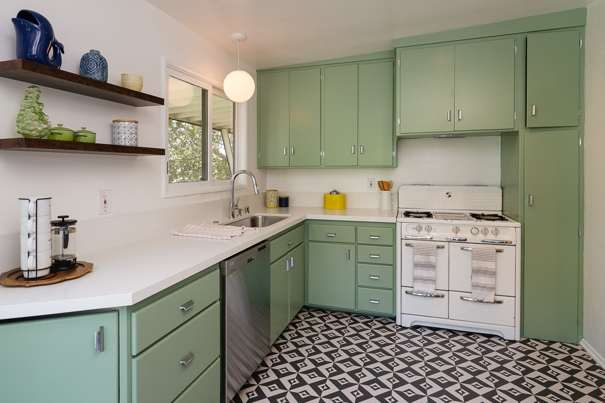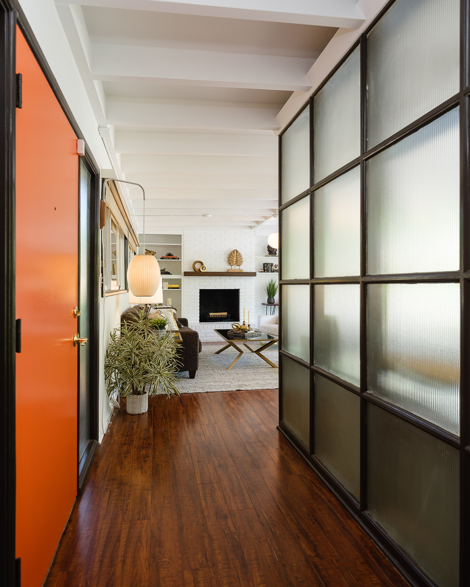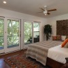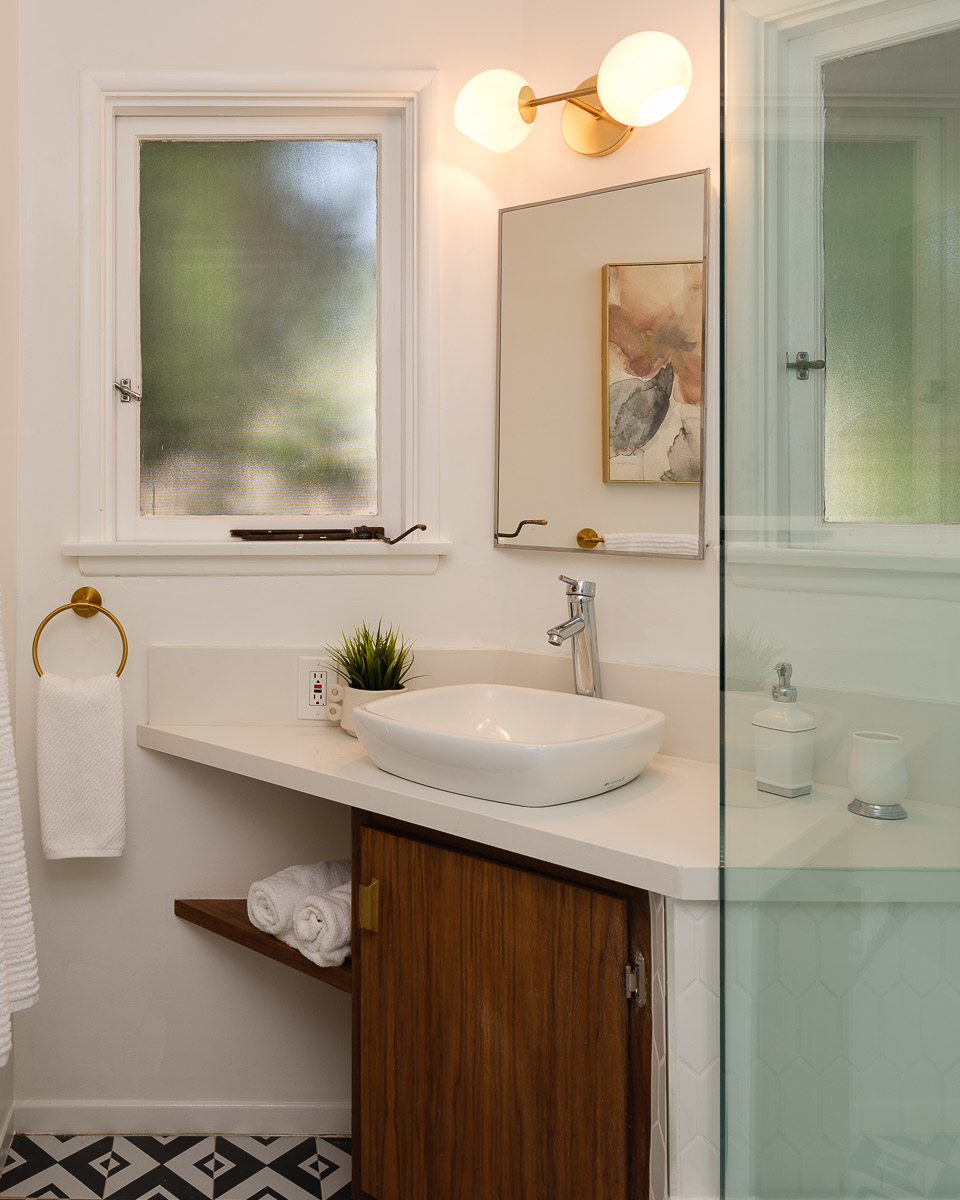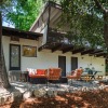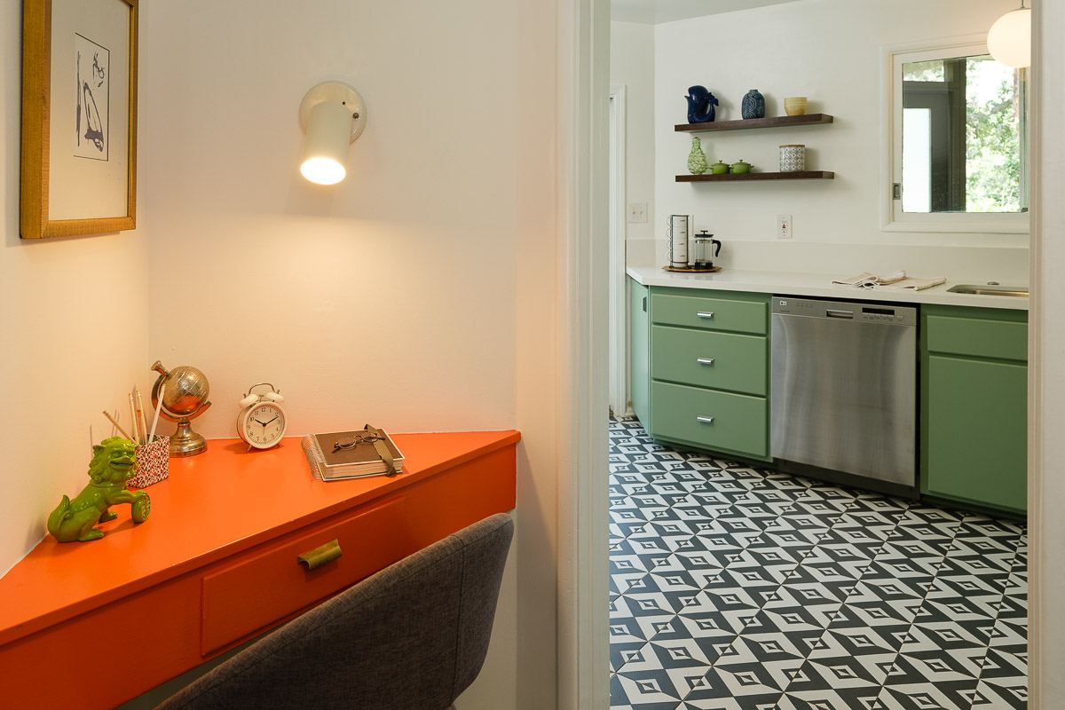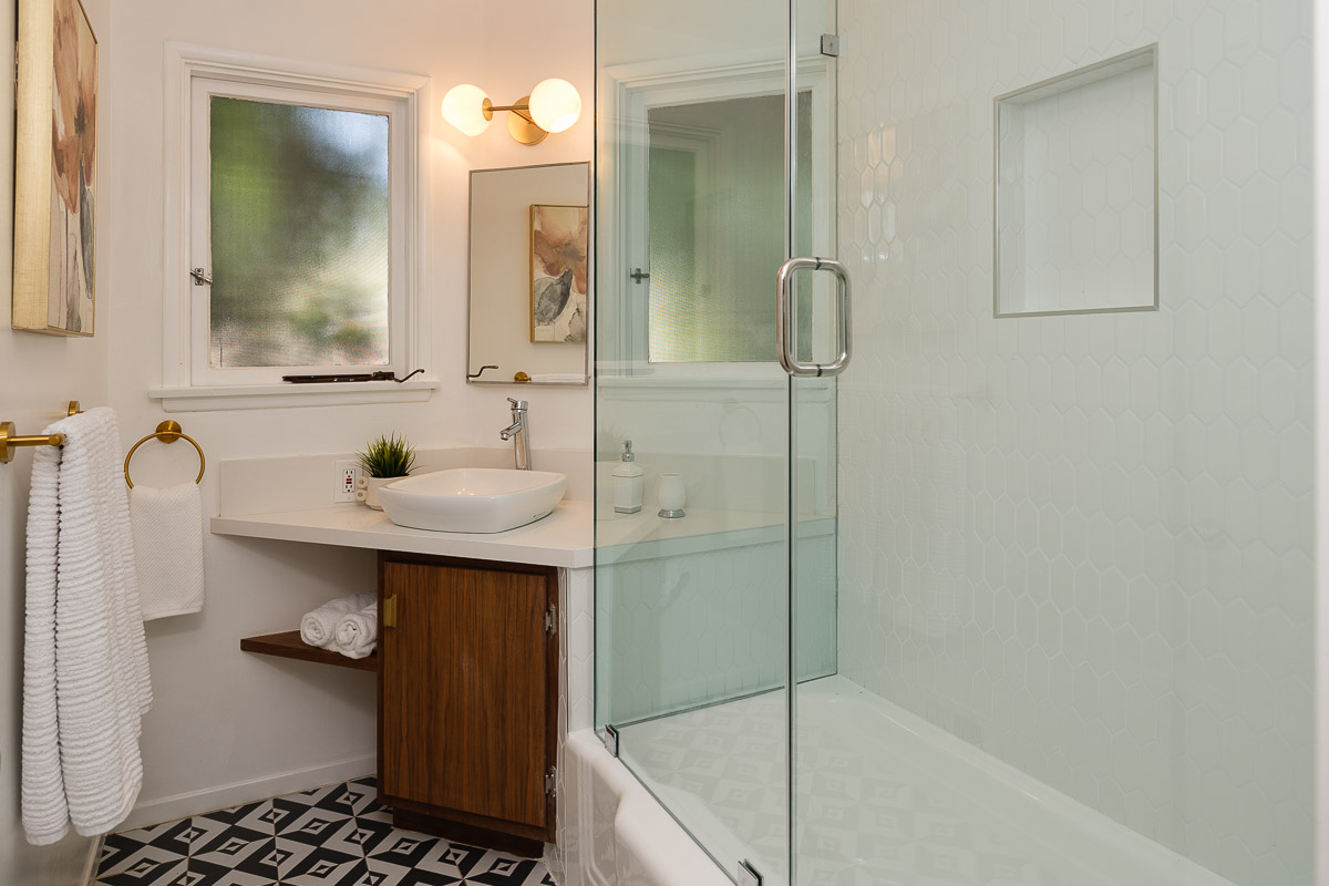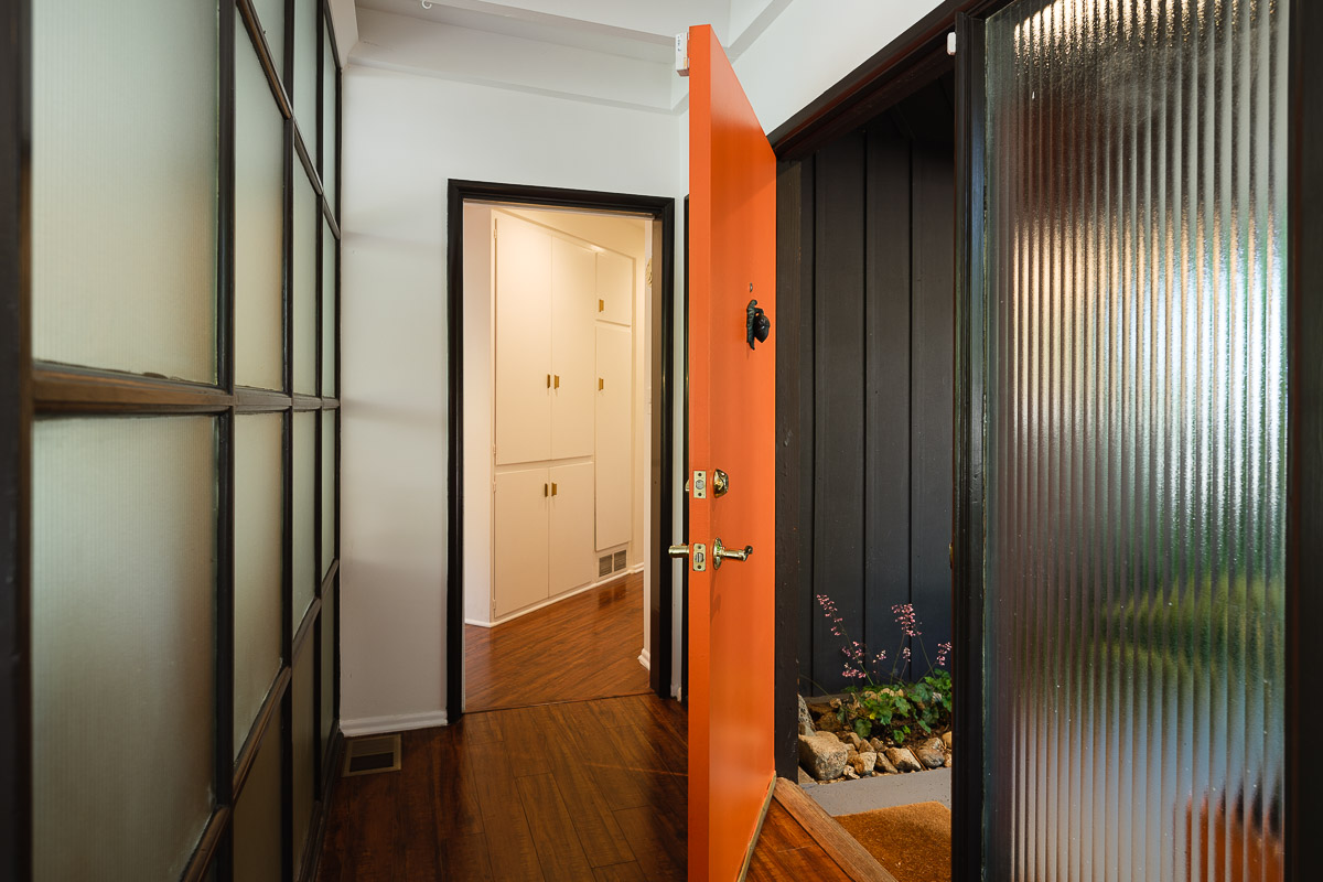 You step into the architectural home via a tall door flanked by period, reeded glass panels. As you enter the residence, wrapped in windows, you are led to the elegant living room with beamed ceilings as well as a stately fireplace. This adjoins the inviting dining area and kitchen that has been recently remodeled. This upper floor also features a renovated bath and two bedrooms, including a primary bedroom that opens out to a wide balcony that showcases tree-top views of the beautiful surroundings. The bottom floor is bonus space and would be ideal as a separate guest suite or office. This property is filled with character details and fixtures throughout including custom built-ins, clerestory windows and mid-century lighting that complete the picture-perfect interior.